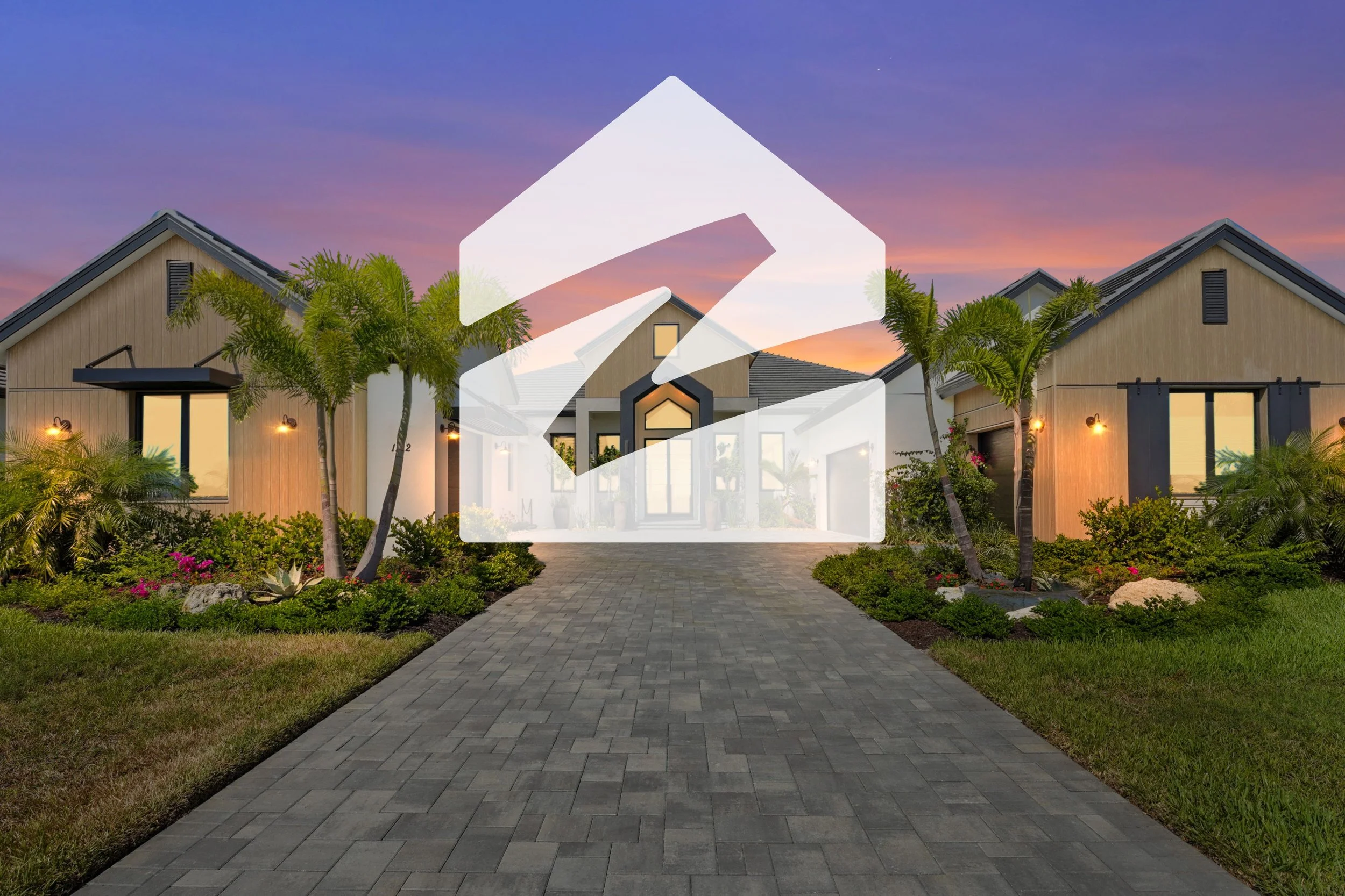 6 images edited to resemble photos taken of a home during sunset time